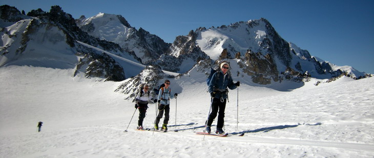 Le 16 : direction le col d'Argentière, grande classique au départ des Grands Montets, et encore du très bon ski malgré une neige assez ventée!
