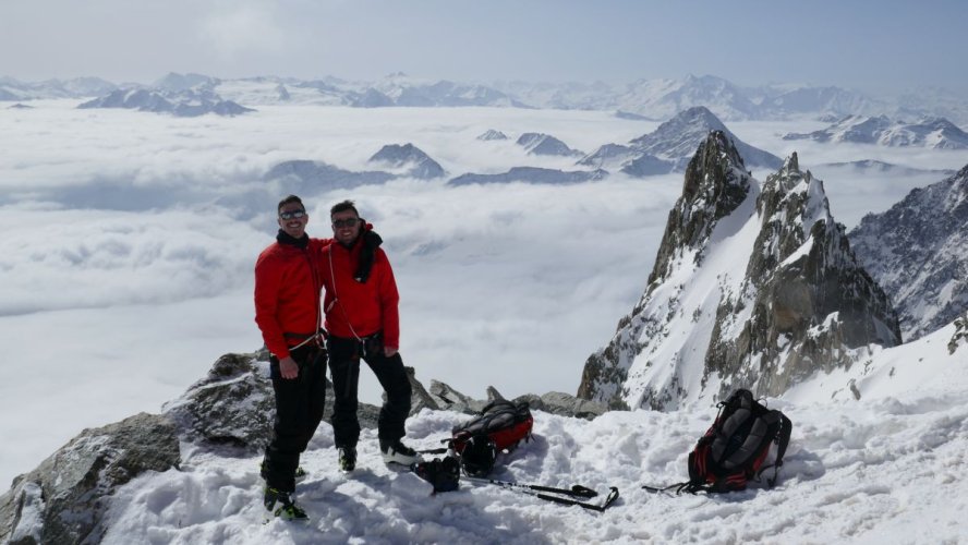 Nous avons pu ainsi remonter le glacier de Leschaux et le bas du glacier du Mont-Mallet, bien loin des foules et en prenant comme toujours une grande claque en s'approchant de la face Nord des Jorasses. Avec un groupe nous avons aussi rejoint le col d'Entrêves, recherché pour sa relative facilité d'accès permettant une jolie initiation au ski de randonnée et la vue splendide qu'il offre sur les sommets du Val d'Aoste et de Vanoise.